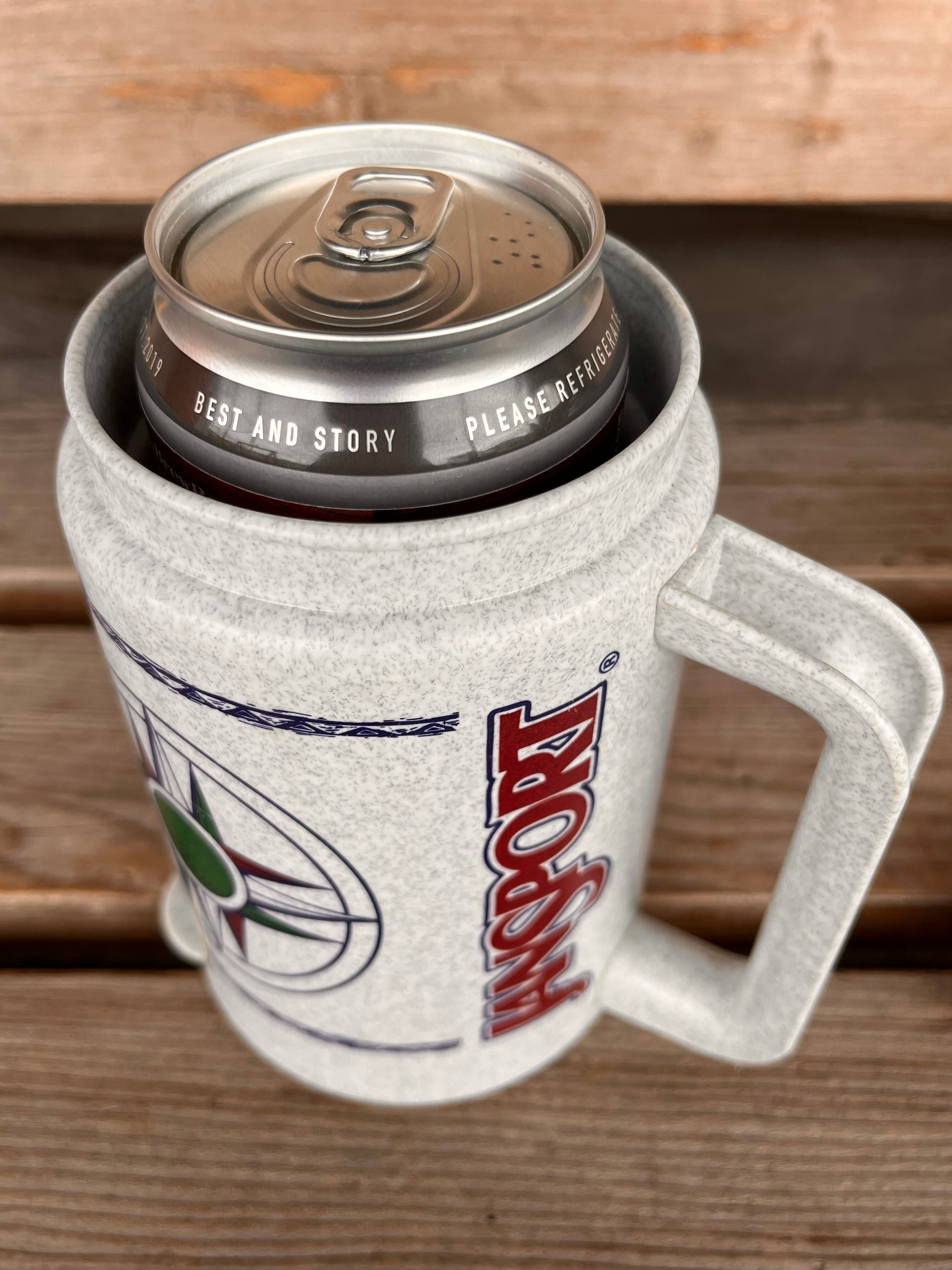 MUG以外にも、ビールやジュースの缶が中にセットでき、缶クーラーとしてもご使用可能です。逆さにしても落ちません。