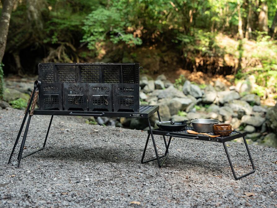 テーブルといえば、大きなメインテーブルがまず思いつくでしょう。しかし、実際フィールドでキャンプをする際にここにちょっと置き場所あったらいいな!という事は多々あります。そんな時に活躍してくれるのが、このアイアンテーブルminiなのです。